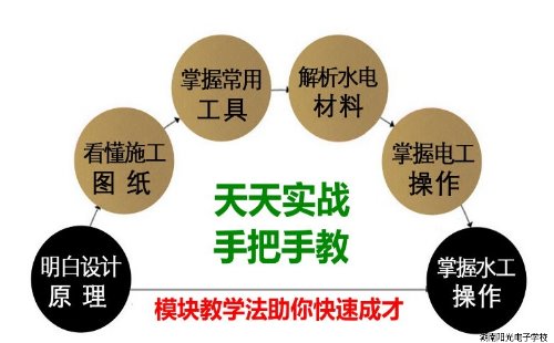 1,个别人觉得到施工队去学水电技术,全部都是实践,应该效果会很好。其实是大错特错!从表面上看 ,在施工队好像实践的机会很多,但是,在施工队中的所有师傅的主要工作是施工,不是教学,所以他不可能用心来教你技术(因为你耗掉了他的时间)。再加上施工队的师傅大多数是文化底子不厚,本身就是跟师傅学出来的,不是科班出身,即使他肚子里有东西,他也不一定能完整表达出来,让学员弄明白。他们一般只知其然,说不出其所以然,这样就教不好学员,学员也只能学些皮毛,核心技术你根本不可能学到(因为师傅水平有限、也根本不识施工图,只能照葫芦画瓢)。湖南阳光电子学校的老师都是科班出身,从事水电教学、施工工作多年,有丰富的教学和实战经验,懂设计、懂施工,更重要的是懂怎样教学,知道怎样让学员弄懂学会,有完善的教学方法和系统的教案,能够由浅入深、稳打稳扎教会学员。我们经常会看到在一些中学里,有些老师教的学生90%以上可以考取本科,而有些老师带的班只有个别学生能考取本科,这是为什么呢?原因就是:老师对学生的学习效果起决定作用!